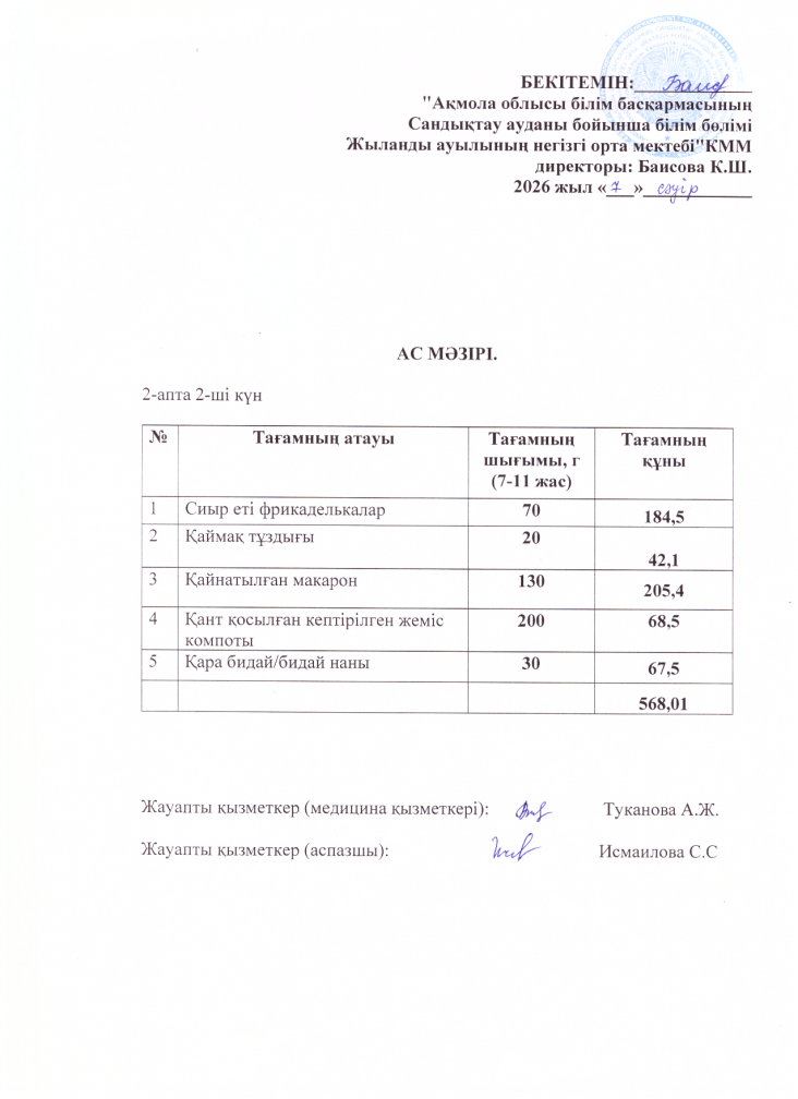 Ас мәзірі Бекітемін: 2026-2027жж