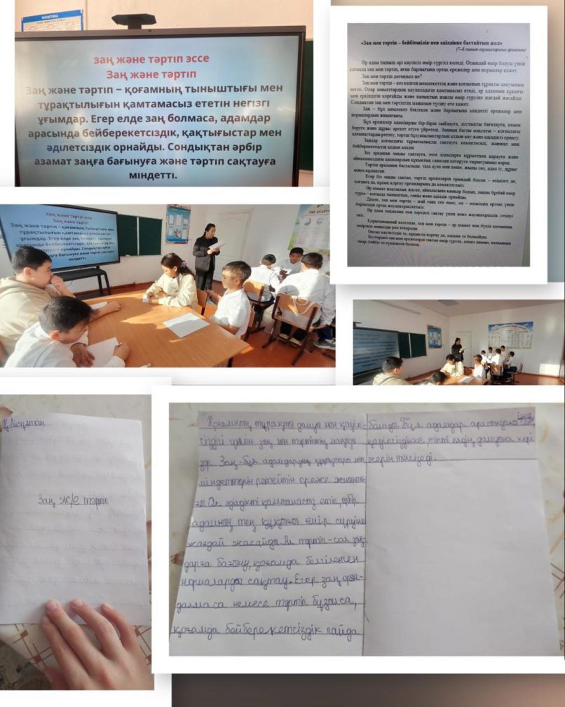 “Заң мен тәртіп-бейбітшілік пен әділдікке бастайтын жол” тақырыбына оқушылар эссе жазды.
