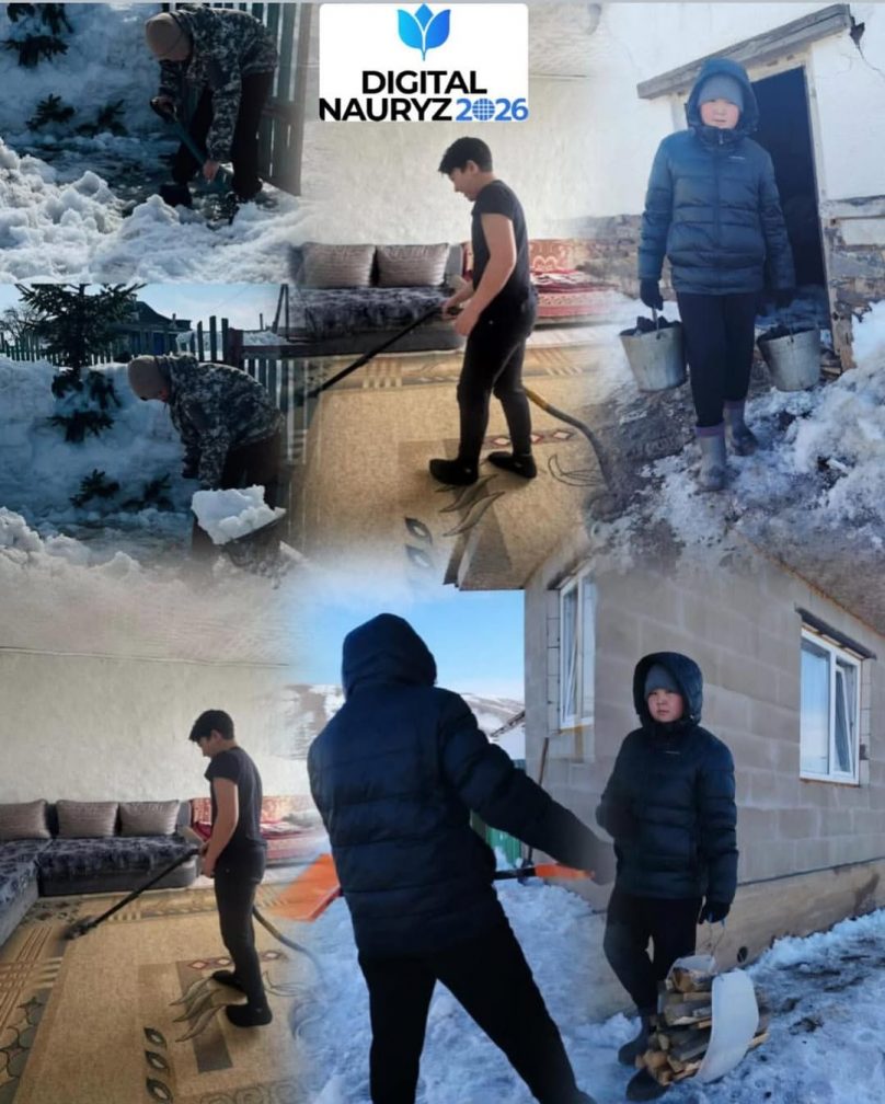 "Жақсылық автобусы" экологиялық акциясы аясында 8-9 сынып оқушылары, өз отбасында, ауласында тазалау жұмыстарына белсенділік танытып, ата-аналарына демалыс уақытында көмектесу үстінде.